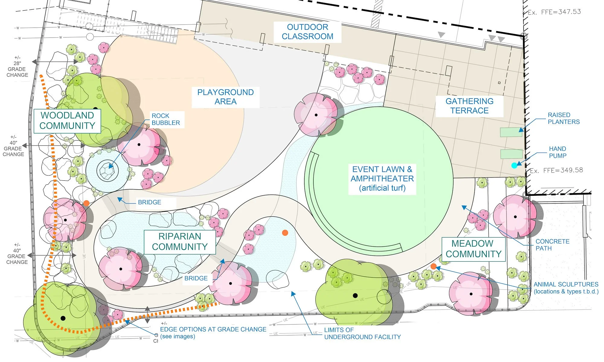 I design residential gardens, school gardens, skilled nursing and memory care therapeutic gardens, public parks, as well as amenity spaces, open spaces, and signage design for retirement communities and multi-family developments. I work closely with clients to develop conceptual design sketches, site layout plans, and planting plans. Additionally, I provide grading plans, construction details, and project construction oversight.